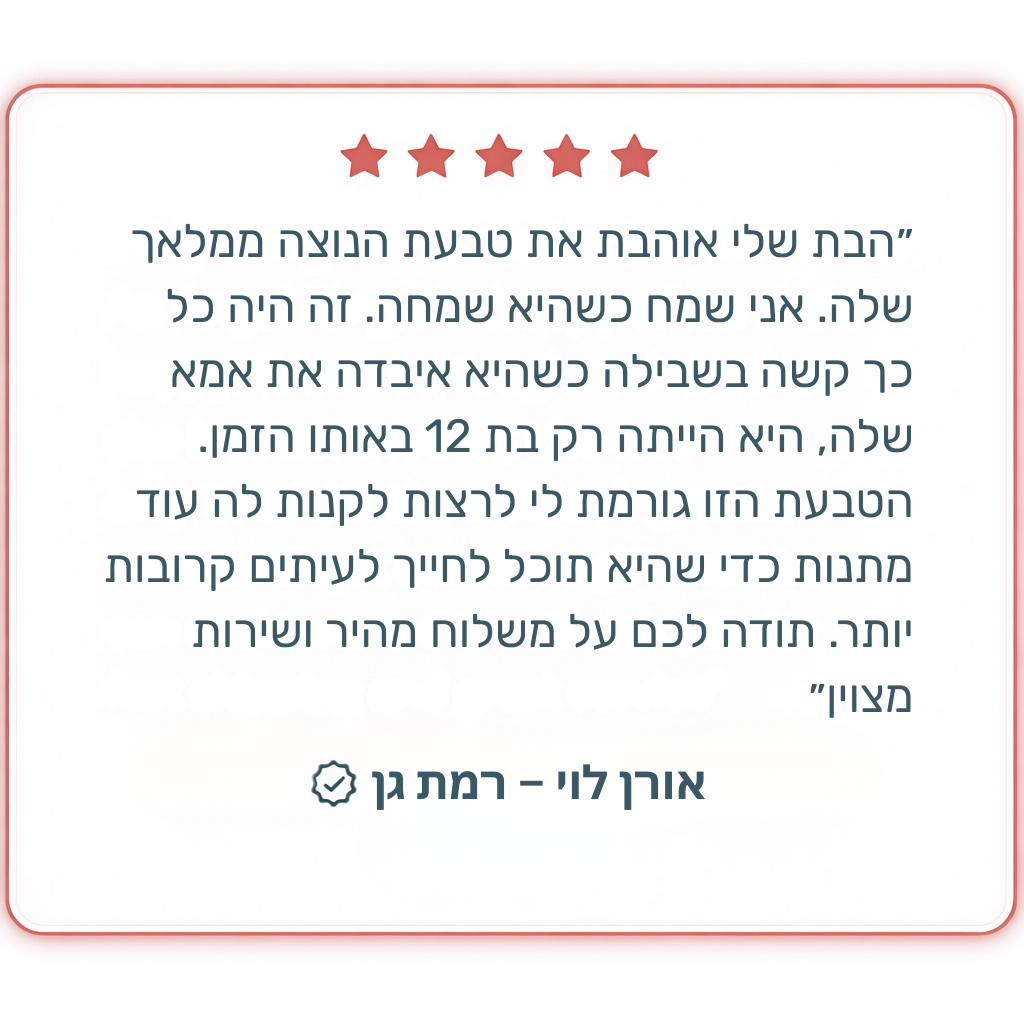 ״מתה על זה והזמנתי אחת גם לחברה. הזמנתי גם את טבעת החיבוק בצבע זהב. אוסיף ביקורת נוספת כשהן יגיעו.״