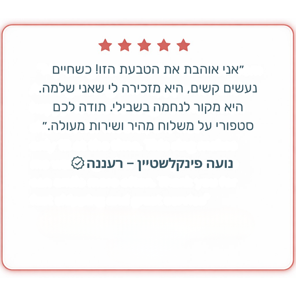 בהענקת המתנה הזו תיגעו בלב של חברים, בני משפחה או בן/בת הזוג שלכם. כשאתם נותנים אותה, אתם מעניקים להם חתיכה מליבו של האדם האהוב עליהם - תזכורת מוחשית ויקרה שתישאר איתם לנצח.